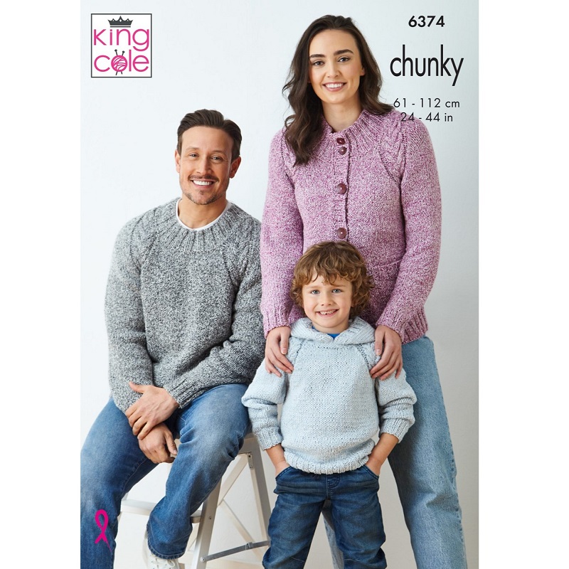 King Cole Simply Denim Chunky Pattern - 6374 Sweaters and Cardigan Description