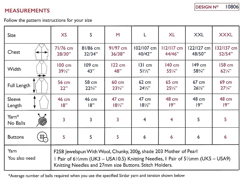 Sirdar Jewelspun Chunky With Wool Pattern - 10806 Cardigan Description